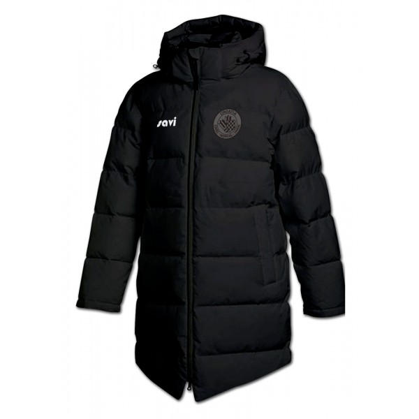 Long winter coat with hood designed specifically for training or pre-match in cold or rainy weather.